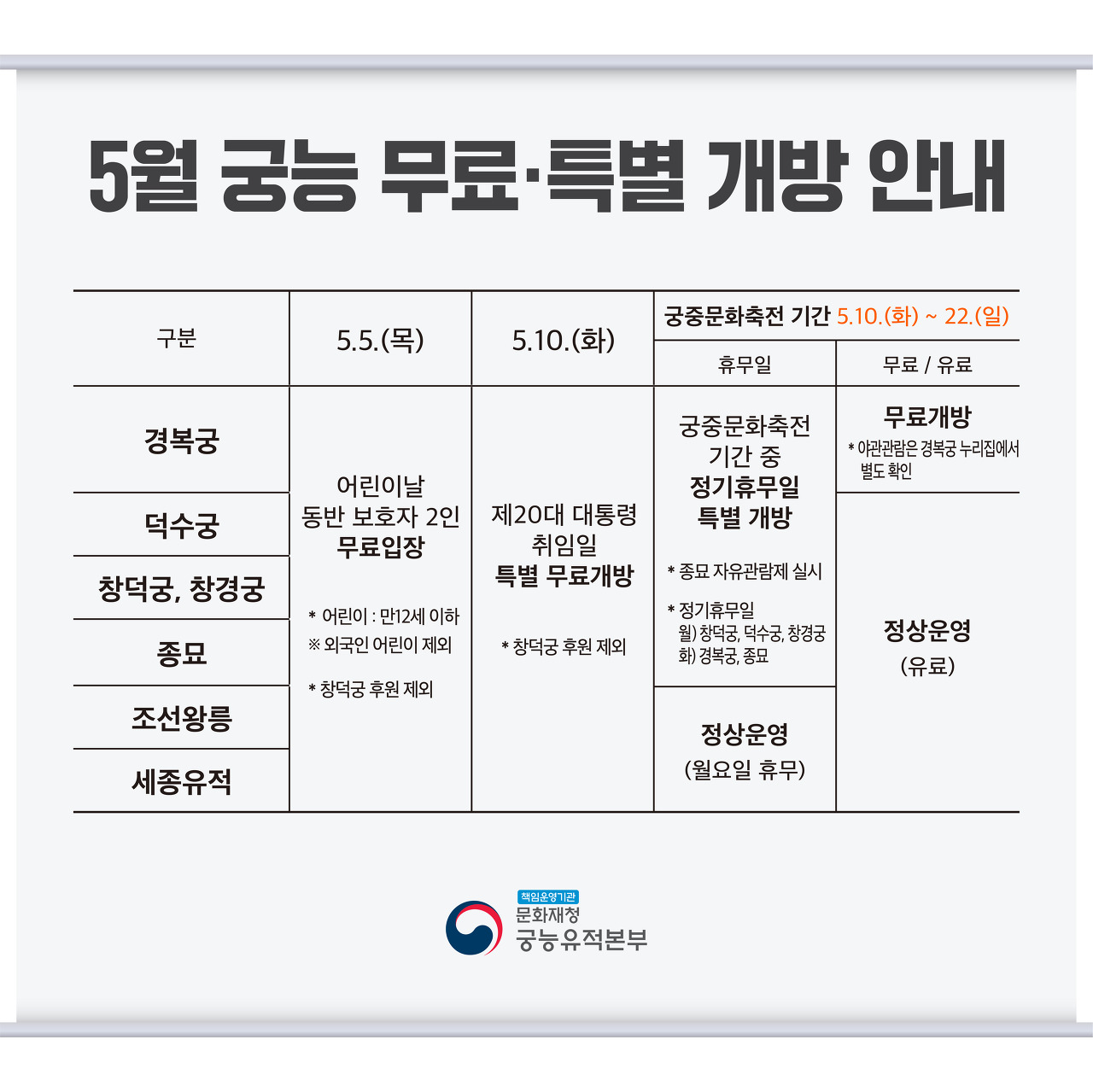 05.10(화) ~ 22(일) 궁중문화축전 기간