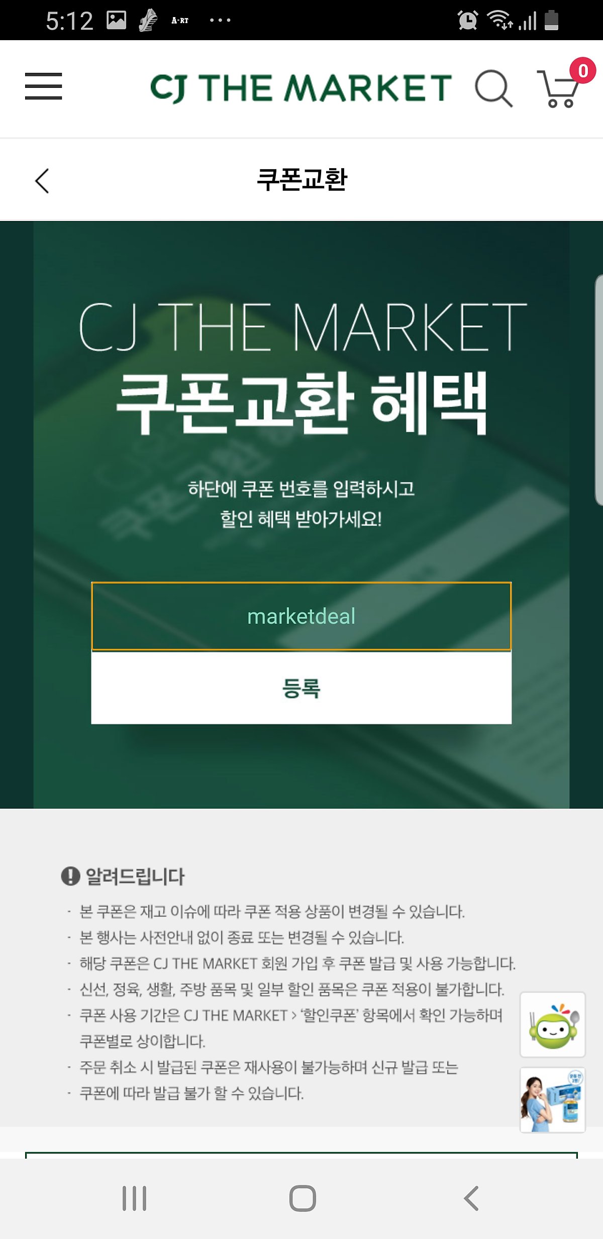 - 발급방법: 여기 클릭 후 marketdeal 할인코드 입력