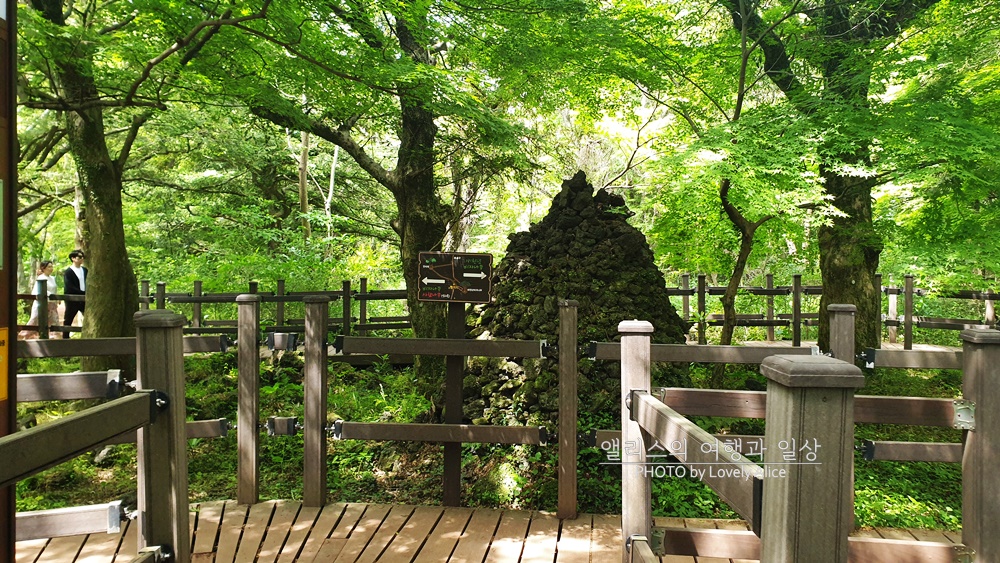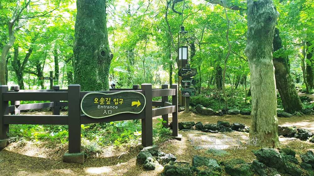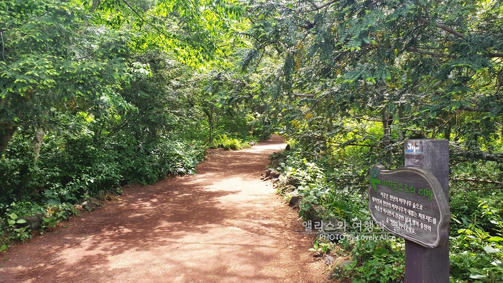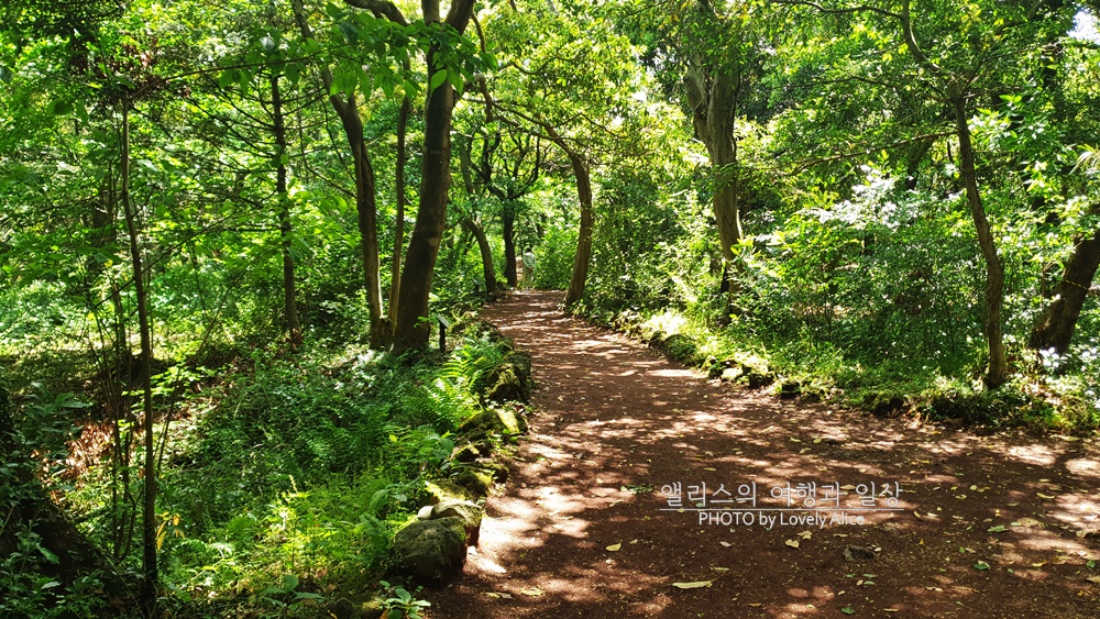 코스는 A코스와 B코스로 나뉜다. 어느 코스를 걸어도 좋지만 나는 B코스를 선택했고 그 코스에는 돌맹이길이 있었다. 걷기는 다소 불편하긴 했으므로 아이가 있다면 A코스를 선택하길 추천한다. 기본적으로 어느 코스를 선택하든 약 1시간 조금 안되는 정도가 소요된다. 산길이라 생각이 들고 그것이 사실이기도 하지만, B코스의 돌맹이 길만 제외하면 사진에서 보는 것처럼 걷기 편하도록 평지로 깔려져있다. 이는 화산송이로 이렇게 평평하게 만들었다고.