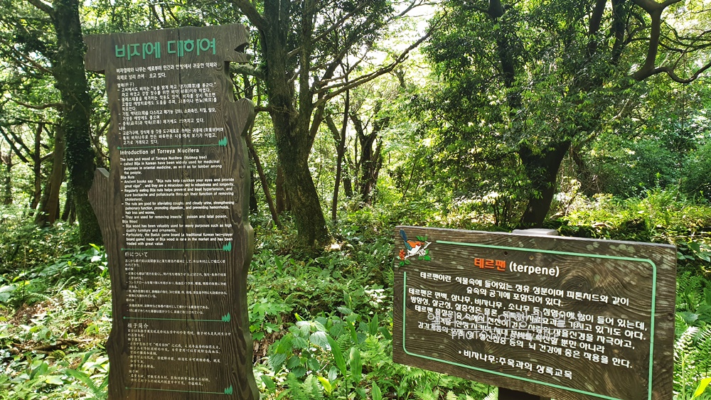 거목들이 군집한 세계적으로 보기드문 비자림은 평균적인 높이가 7~15m에 이른다고 한다. 이런 나무와 풀 사이를 걷는 일은 즐거운 일이자 행복한 일이었다. 평소에도 집 근처의 낮은 산에 있는 산책로를 걸으며 시간 보내기를 즐기는 나에게 비자림은 이 곳에 존재하는 것 만으로도 엄청난 행복감을 안겨다주었다.