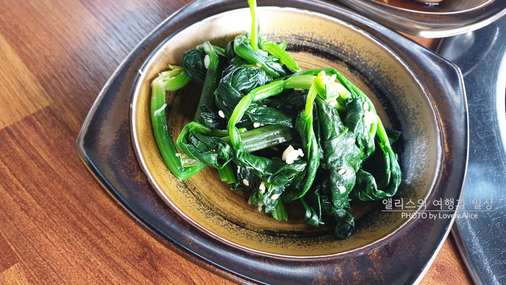 쌈밥이름 답게 쌈 채소도 다양했다. 보통 기본 상추와 깻잎이 전부일 수 있는데, 겨자채와 당귀(인가 신선초인가 조금 헷갈림)도 함께 제공되었다.