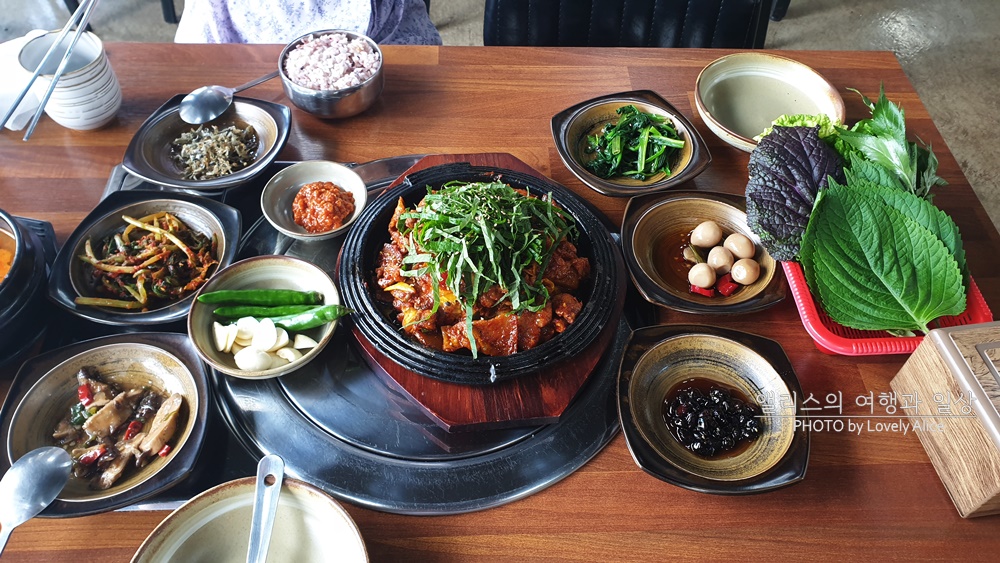 제주도 물가 생각하면 꽤 저렴한 편에 속하는데, 그에 비해 반찬가짓수 마음에 들었고 양도 넉넉했다. 무엇보다도 이 가격에 돼지볶음과 청국장이 넉넉히 제공되었다.