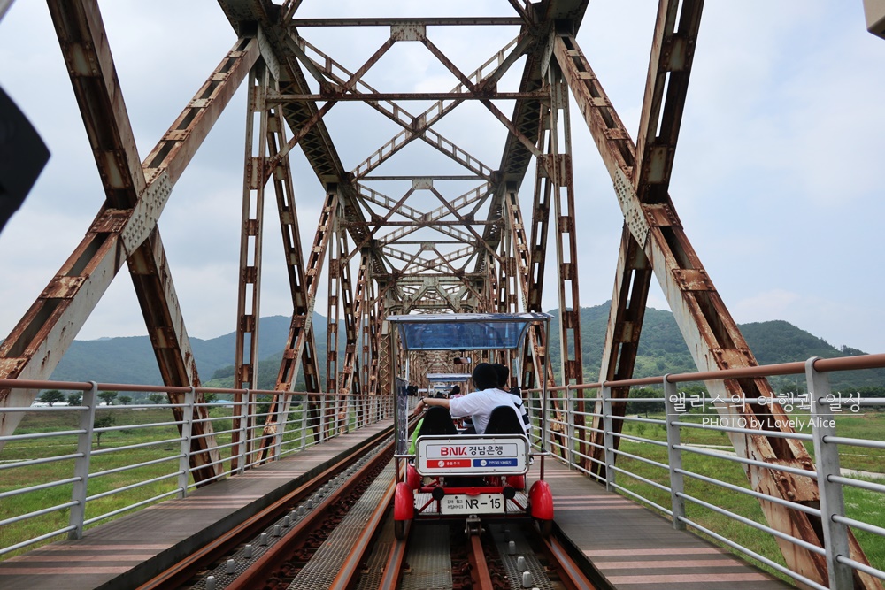낙동강 위에 있는 오래된 철로가 보이기 시작했다. 이곳에 도착하고나니 뭔가 기분이 남달랐다. 거대한 기차를 탑승해야만 지날 수 있는 장소를 단순힌 레일 바이크만으로 지나갈 수 있다는 사실이 흥미로웠다.