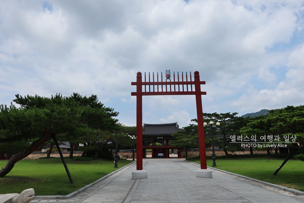 수로왕릉에 도착해서 소독제 한번 사용 한 뒤 입장했다. 드 넓은 공간에서 이곳저곳에서 건물이 보였다. 직진으로 걸어간다면 홍살문을 거쳐서 수로왕릉까지 단번에 도착 가능하다. 드넓은 초록의 무덤은 그 크기가 꽤나 컸다. 이 곳을 잠시 나와 오른쪽으로 돌아가면 가벼운 산책로가 있다.