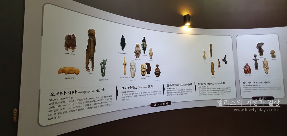 선사시대 여인상의 종류는 실로 다양했다. 물론 그것을 만드는 이의 창작이 가미되었으니 당연한 이야기일테지만, 여성을 시각화하는 디자인이 모두 제각기였다는 것은 충분히 흥미로웠다. 다만 그렇게 다양성을 가짐과 동시에 공통성 역시 가지고 있었는데, 대부분의 여인상은 풍만하게 제작되었다. 4만여전부터 존재한 것으로 보는 이 여인상들의 공통점을 통해서 그 당시 바라는 소망이 투영된 것으로 볼 수 있다.