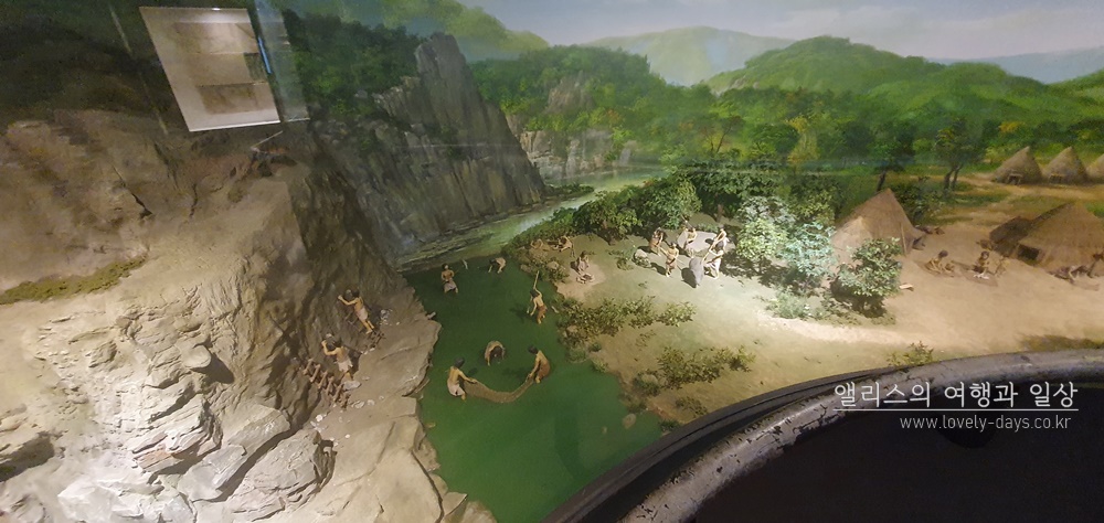 1층 전시실에는 선사탑,암각화의 이해, 선사시대 생활 디오라마, 반구대 암각화 복제모형, 천전리각석 복제모형등을 볼 수 있었다. 규모가 크지는 않았지만 암각화에 대한 대체적인 이해를 하는데 큰 도움이 되었다.