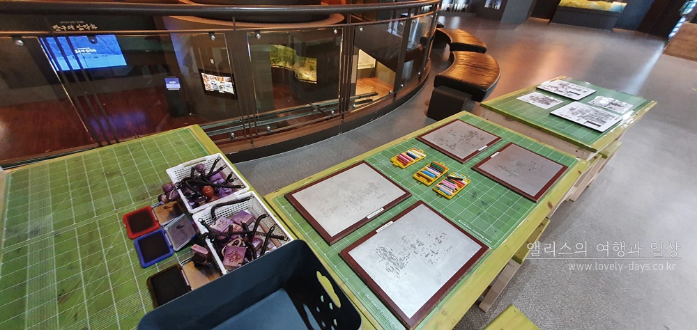 2층으로 올라가면 실제 뭔가 해볼 수 있는 체험공간이 있다. 탁본을 뜬다거나 퍼즐을 맞춘다거나.