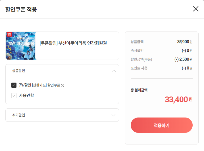 3. 최대 할인(약 60% 넘게 할인)받고 부산 아쿠아리움 연간회원권 구매방법