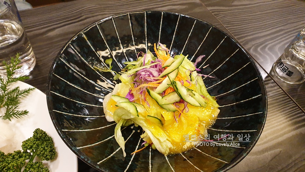 얇지만 쫄깃한 문어 식감은 잘 살린 것이 특징. 상큼한 채소와 적절한 소스가 잘 어울렸다.