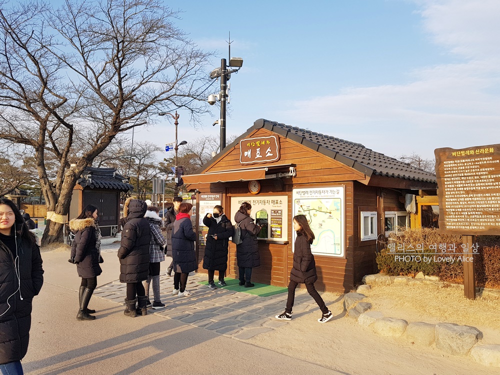 동부사적지 내에 있는 첨성대쪽으로 가면 허허벌판이 보인다. 이 넓은 공간에서 여유롭게 걸으며 구경하는 이도 있고 연을 날리며 가족들과 즐거운 시간을 보내는 이도 있었다. 1월 한창 추운 겨울 날씨에서 걷기도 귀찮고 춥기도 춥고... 조금 더 편하게 이 넓은 곳을 볼 수 있는 방법은 없을까 하던 찰나에 내 시야에 "비단벌레 전기자동차"가 보였다.