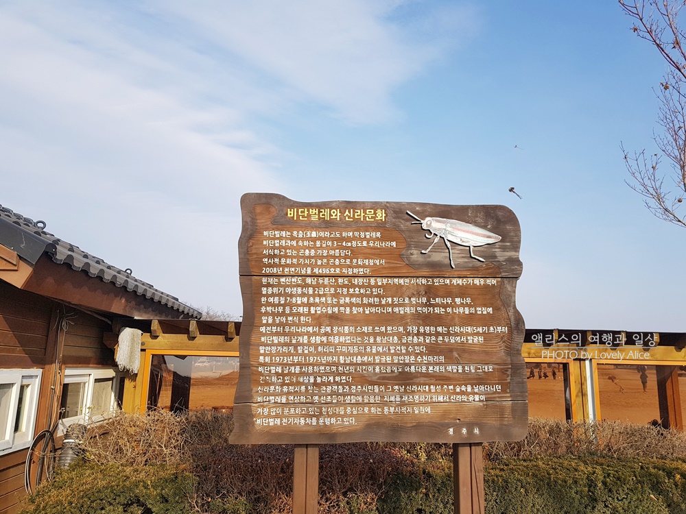 동부사적지 내에 있는 첨성대쪽으로 가면 허허벌판이 보인다. 이 넓은 공간에서 여유롭게 걸으며 구경하는 이도 있고 연을 날리며 가족들과 즐거운 시간을 보내는 이도 있었다. 1월 한창 추운 겨울 날씨에서 걷기도 귀찮고 춥기도 춥고... 조금 더 편하게 이 넓은 곳을 볼 수 있는 방법은 없을까 하던 찰나에 내 시야에 "비단벌레 전기자동차"가 보였다.