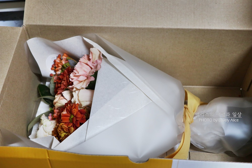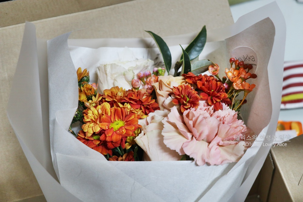 한겨울이지만 따뜻하고 포근한 이미지를 품은 바이올렛 에디션. 연보라 장미와 스토크가 잘 어울린다. 여기에 활짝 핀 카네이션까지. 유칼립투스와 시네신스가 잘 받쳐주는 모습이 인상적이다. 매번 그렇듯이, 새롭게 시작된 또 다른 6개월의 시작도 기분 좋은 꽃다발과 함께하기 택배를 받은 날은 확실히 즐거운 날이 되었다.