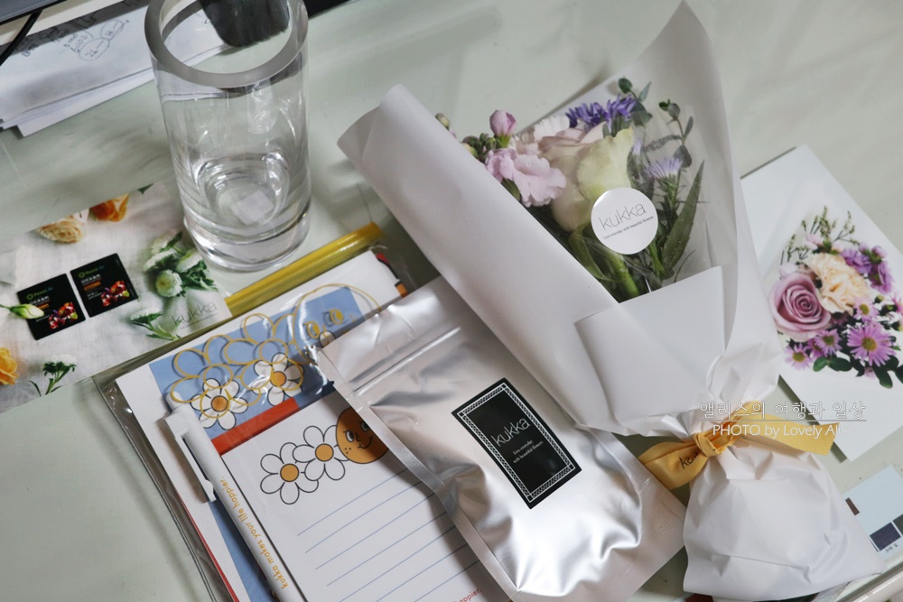 벌써 2년차라니. 기록을 뒤져보니 2018년 11월이 꾸까와의 첫 만남이었다. 그게 벌써 2년이 지났다니. 다시 재구독을 선택하고 내가 늘 사용하던 10% 할인코드를 적용했다. 여기에 오롤리데이와의 콜라보 덕분에 부가적으로 예쁜 메모지도 얻게 되었다! 기분 좋은 득템이네! 앞으로도 꾸까가 정기구독 프로그램에 다른 캐릭터나 이벤트의 콜라보가 많이 진행되면 좋겠다. 꽃을 2주마다 새롭게 배달받는 즐거움과 별도로 그 캐릭터를 즐길 수 있는 기회가 될 테니까!