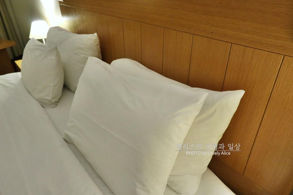침대는 기본 프레임에 생각보다 두꺼운 매트리스가 깔려있다. 여기에 편안한 베딩상태까지. (나는 덮는 이불을 저렇게 빼놓는 것을 굉장히 좋아하는 편!) 베게는 총 4개인을 보아서는 더블베드가 있는 더블룸을 업그레이드 해준 것이 아닌가 의심스럽긴 했지만 굳이 프론트에 물어보지는 않았다. 귀찮았으므로...! 어쨌든 넓은 침대를 혼자 독차지한다는 생각은 충분히 기분 좋은 일이었다.