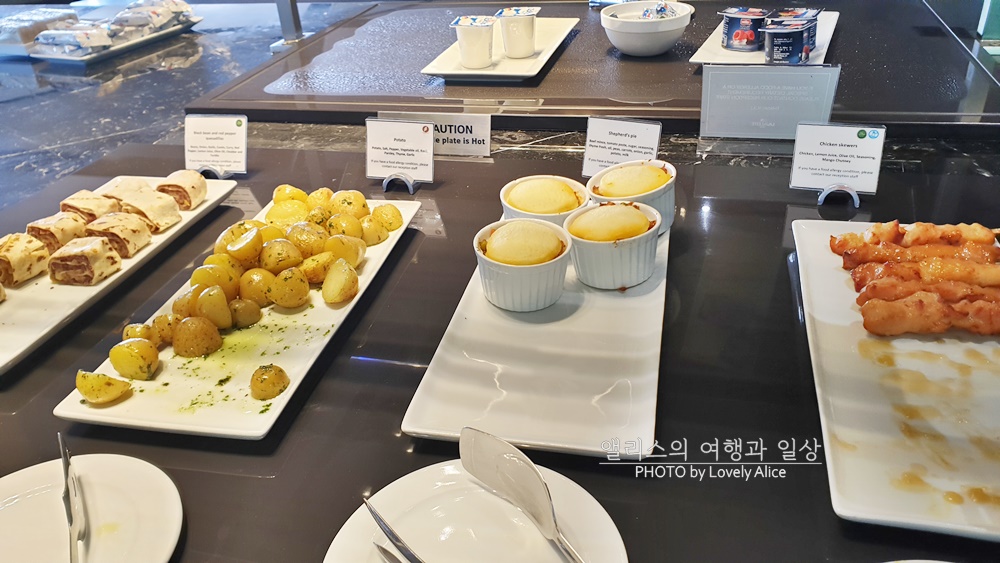 이 라운지에서 과일이 전혀 없다는 것이 역시나 내 입장에서는 아쉽긴 했지만, 생각보다 닭꼬지도 맛있었고, 요거트도 딱 좋았다. 다만 의외로 부리토는 무슨맛인지 밍숭맹숭 별로였고 셰퍼드파이라도 있어서 든든하게 속을 채울 수 있었다.