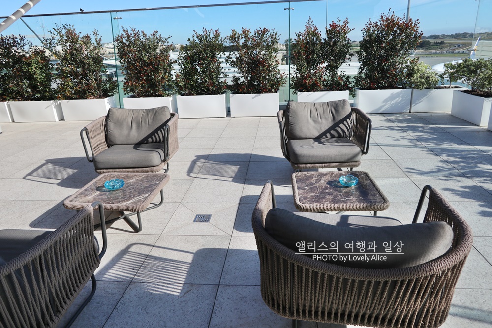 내리쬐는 건강한 햇살을 받으며 쉴 수 있는 이 곳은 사실 흡연자를 위한 자리다. 다행이라면 비흡연자인 내가 이 곳을 방문했을 때 담배피는 이들이 없었기에 조금은 상쾌하게 야외좌석에서 활주로를 볼 수 있었다. 물론 다시 말하지만 이 야외좌석은 흡연자들을 위한 공간이라는 점은 잊지 말자.