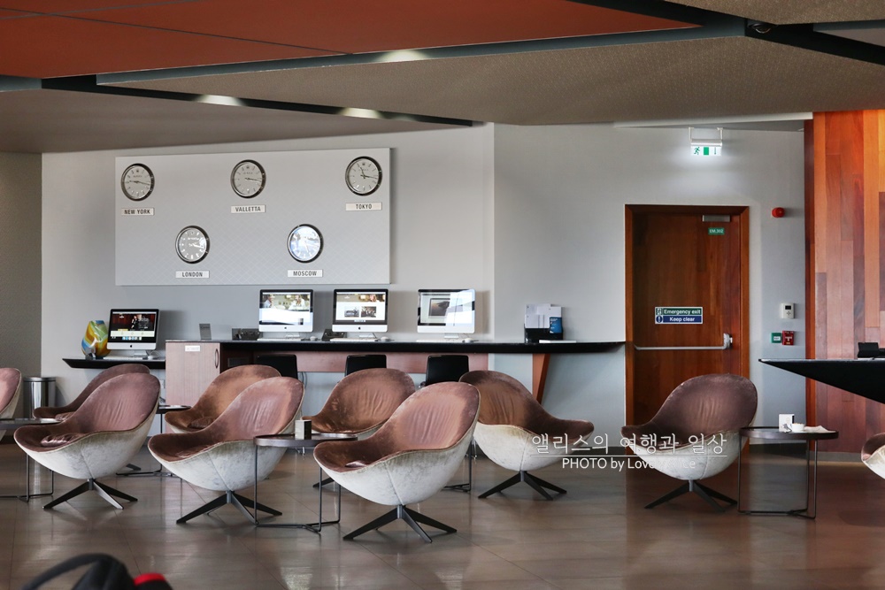 - 위치: 몰타 공항 내 에어사이드 위치(보안 검사대를 지나 면세점을 통과하여 출구에서 엘리베이터를 타고 3층으로 이동)