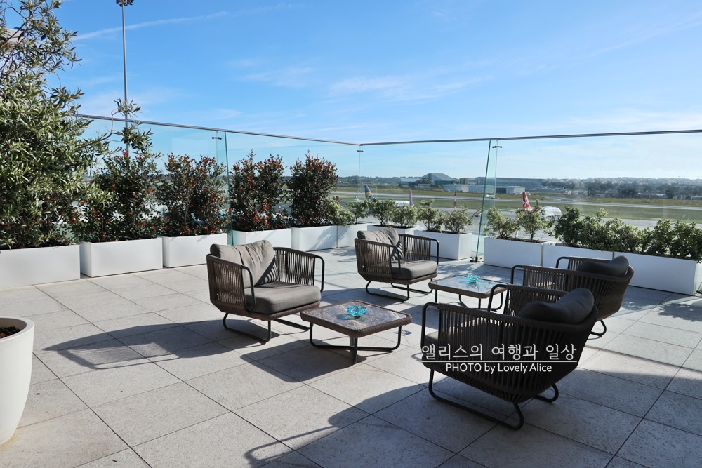 유리 투명창 덕분에 활주로를 그대로 보는 것 같은 느낌! 이런 야외좌석이 아닌 실내 공간도 통유리창으로 되어있으니 이곳이 아니어도 실내 통유리로 활주로를 볼 수 있으니 비흡연자라면 실외보다는 실내가 훨씬 편하다.