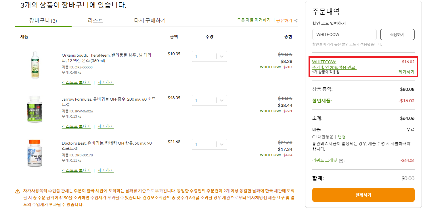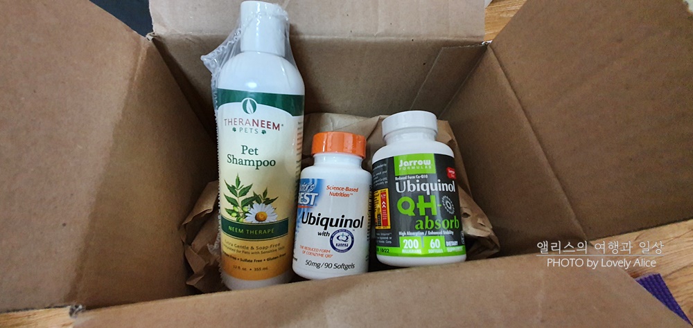 이번달에 구매한 것은 총 세개. 나의 유비퀴놀, 강아지 유비퀴놀, 그리고 강아지 샴푸.