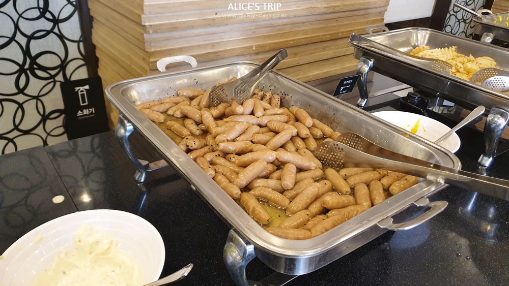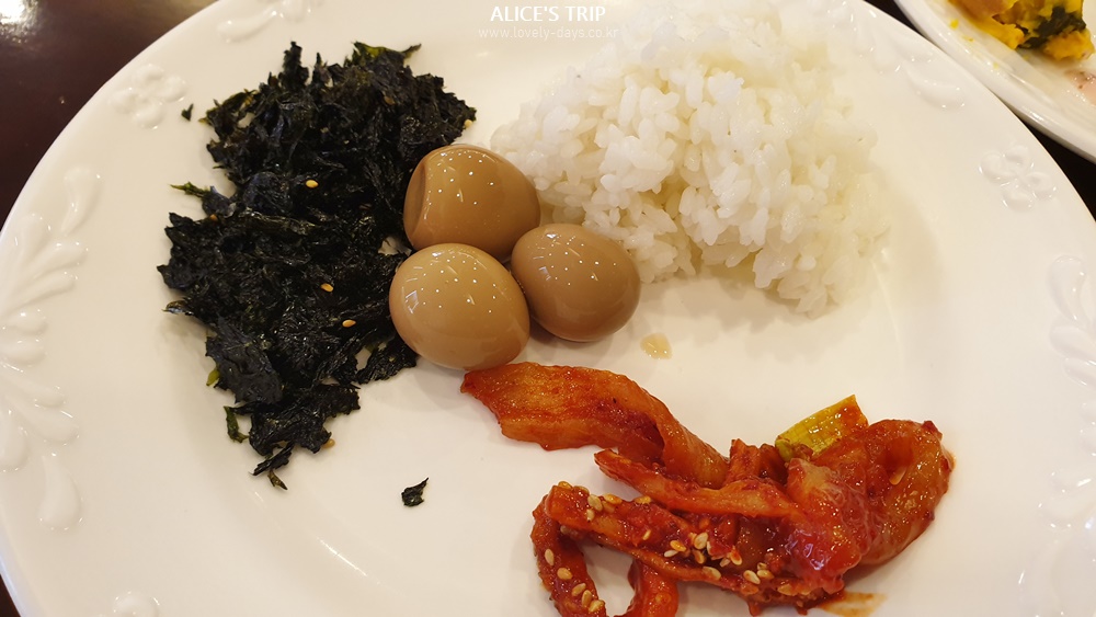늦은 시각에 도착해서인지 사람이 거의 없었다. 전반적으로 조식은 무난한 편이었다. 사람마다 취향이 다르므로 동일한 조식 메뉴가 있더라도 좋다 싫다가 나뉘는 것이 당연할 터. 사실 글로리 콘도 해운대 조식은 사전에 블로그 리뷰를 보고 괜찮다는 리뷰가 많아서 긍정적으로 기대했는데, 정작 조식당에 가보니 내 입에 맞는 음식이 없었다. 그래서 나는 조식은 조금 별로였다는 생각.