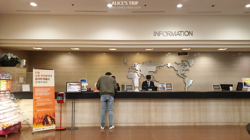 객실은 사전에 예약해두었으니 현장에서 결제하고 직원으로부터 안내사항 전달 받고 안내지도를 받았다. 안내지는 A4 용지 한 장 정도에 빼곡히 앞뒤로 글로리 콘도를 사용할 때 필요한 안내가 적혀있었다. 조식은 추가로 신청했는데, 마침 글로리 콘도에서 진행하는 글로리 콘도 패스포트 이벤트가 있었다. 체크인할 때 사전에 미리 조식을 신청해서 할인 받거나, 혹은 패스포트를 이용해서 현장에서 바로 할인받고 결제할 수 있다. 체크인 시 조식 신청하면 취소가 불가하니 이런 경우 패스포트 이벤트를 활용하는 것이 좋다.