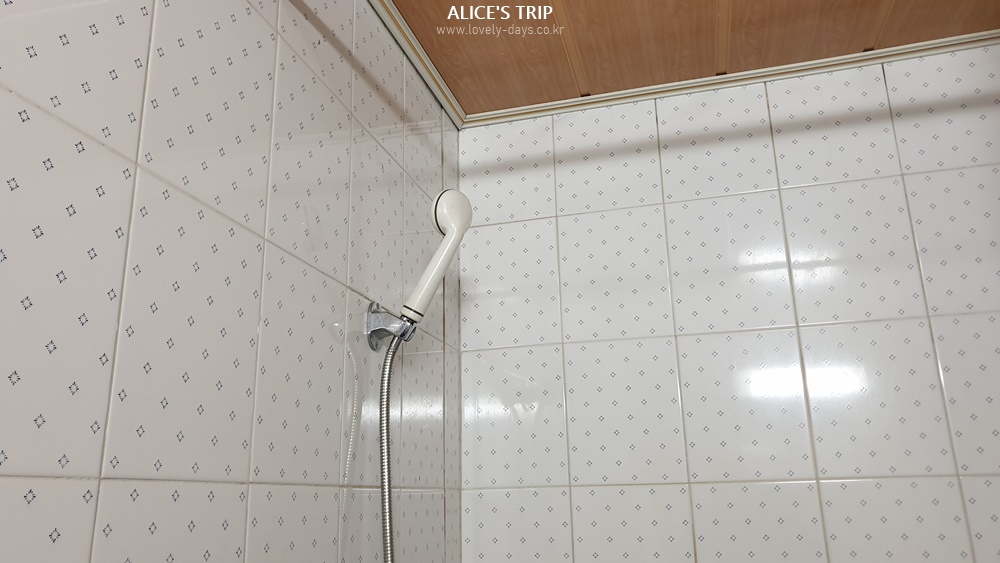 원래 이곳에는 샤워커튼이 있었던 것으로 보인다. 샤워커튼을 달아두는 봉이 보였기 때문이다. 하지만 샤워커튼을 관리문제로 없애버린 것인지 아니면 내 예상과 달리 내가 봤던 그 봉이 빨래 걸이인지는 모르겠으나 어쨌든 샤워커튼이 없다보니 샤워 한번 하다보면 온 욕실에 물이 튈 수밖에 없다. 욕실에서 가장 불편했던 점이 바로 그것이었다. 최대한 물이 튀지 않고 욕조 안에서 샤워하려고 해도 쉽지 않았다.