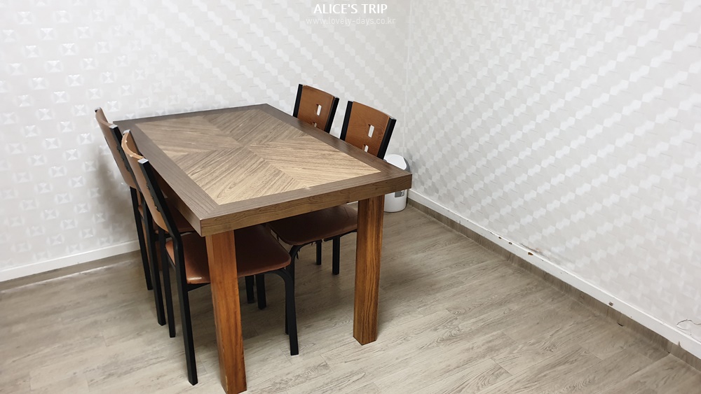 아쉬운 점은 의자의 일부분이 뜯겨져 있는데다가 앉는 부분에 뾰족한 뭔가가 있어서 1개의 의자는 사용할 수 없었고 나머지 3개 의자는 관리가 좀 안 되는 느낌이 들었다.