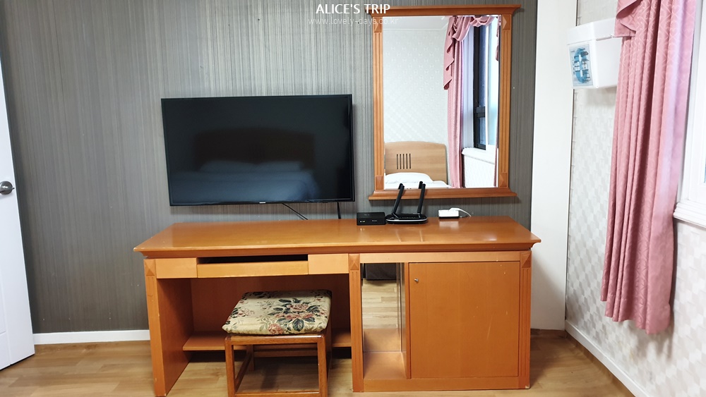 책상은 오래된 것이 눈에 보였지만 넓고 거울이 있어서 좋았다.