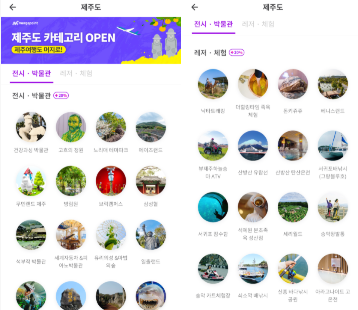 머지포인트라고해서 머지와 제휴된 곳에서는 매번 할인결제가 가능하다. 여기서 인상적인 것은 최근 머지포인트에서 "제주도" 지역을 오픈했다는 것. 이로 인해 머지포인트와 제휴된 제주도 업체에서는 할인된 가격에 입장권을 이용할 수 있게 되었다. 이 할인율은 눈을 크게 만들 정도로 꽤 높은 편에 속한다. 몇몇 업체의 경우 왠만큼 다양한 최저가 입장권과 비교해도 훨씬!! 더 저렴하다. 하지만 그 할인율을 이용하려면 조건이 있으므로 아래 설명을 자세히 읽고 활용해보자.