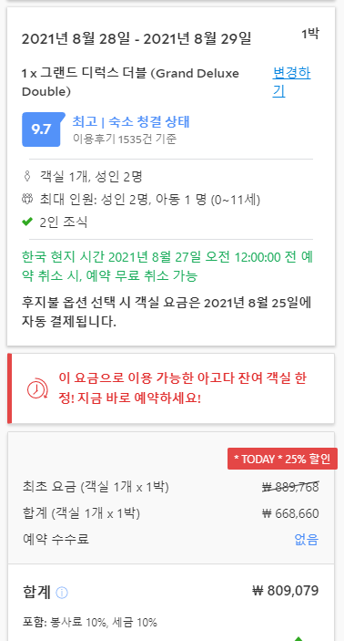 동일날짜와 동일 룸 카테고리 기준으로 예약을 진행해보면 가격차이가 10% 이상 발생함을 알 수 있다. 특히 위 가격은 모든 서비스피를 포함한 기준의 가격이다. 여기에 LHW 공홈의 경우 조식이 포함되므로, 타예약 사이트에서도 조식포함 조건으로 예약을 할 경우 1박당 가격 비교다. 지금 여름 성수기임을 감안하더라도 오히려 LHW 공홈에서 예약하는 것이 10% 저렴함은 물론 연 1회 룸 업그레이드까지 고려하면 LHW에서 예약하는 것이 훨씬 이득이다.