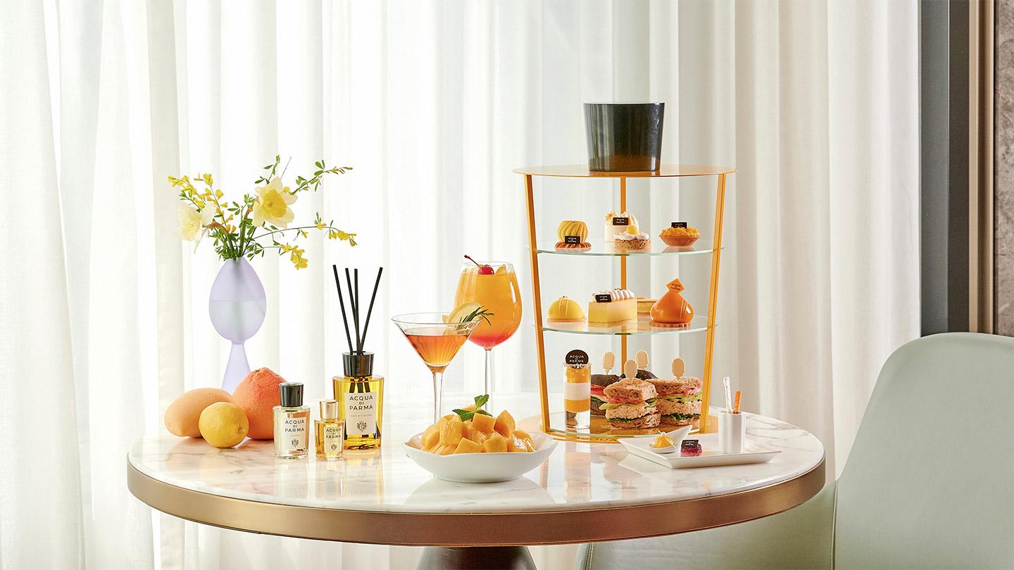 사전예약으로 룸에서 이용 가능한 애프터눈티. 여름의 분위기를 한껏 담아낸 이 애프터눈티에는 애플망고를 이용한 패스츄리와 디저트로 구성되어있다.