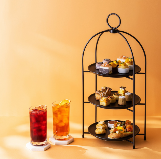 - 애프터눈 티 세트 디저트 구성: [스낵] 훈제연어 브루스케타, 베이컨 시금치 퀴시, 스콘 / [디저트] 패션프루트 마카롱, 복숭아 무스, 파인애플 바바오럼, 망고 타르트, 퍼프 롤, 레몬 파운드 케이크, 바닐라 까늘레