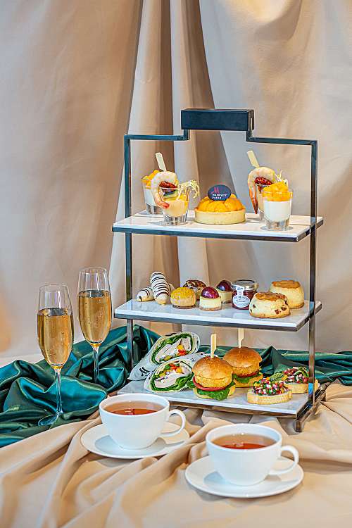 대리석이라는 아주 독특한 소재로 만들어진 3단 트레이에 가득 채워진 망고 스페셜 디저트. 달콤한 애플망고 타르트와 판나코타, 진득한 치즈케이크와 클래식한 스콘, 맛의 균형을 잡아줄 미니버거와 치킨랩을 한번에 맛볼 수 있다.