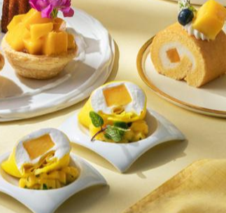 - 애프터눈 티 세트 구성: 복숭아 라임 타르트, 망고 초코 팝, 망고 블럭 슈, 망고 유자 스콘, 망고 마스카포네 치즈 케이크, 망고 패션 프루트 무스, 망고 반미 / 빙수 (클래식 귀리 팥빙수, 망고빙수, 복숭아 빙수 중 택일) / 토마토 전복 물회 파스타 / 망고 스무디 2잔