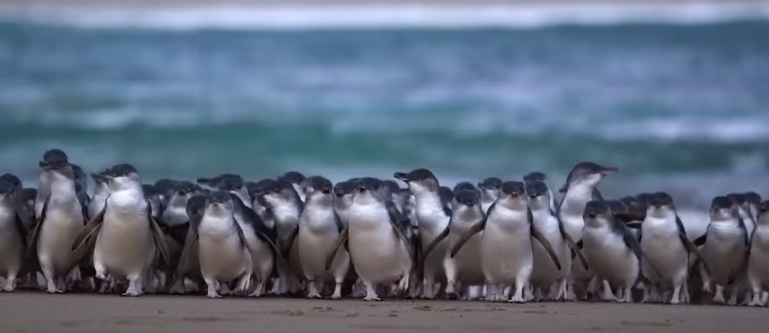 필립 섬에 살고 있는 토종 펭귄인 페어리 펭귄(또는 블루 펭귄이라고 불러요)들이 물고기 사냥을 마친 뒤 해안가에 올라오는 장면을 하나의 퍼레이드 처럼 보이는데요, 보통 호주하면 코알라와 캥거루를 쉽게 떠올리지만, 알고보면 이 페어리 펭귄으로 인해 전 세계 수 많은 관광객들이 이 작은 펭귄의 거대한 군집을 보기 위해 몰려듭니다.