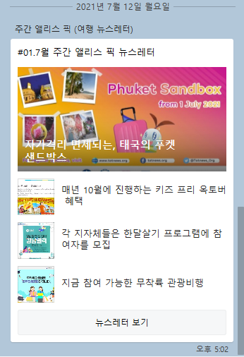 | <7월 여행 프로모션 정보> 주간 앨리스 픽 뉴스레터 카톡 플친만을 위해! (0) | 2021.07.13 |