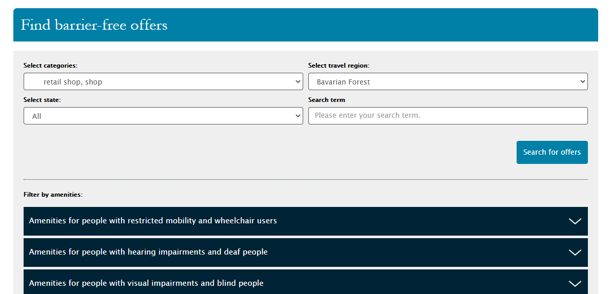 독일의 다양한 형태의 대중 교통, 관련 인프라, 통신 및 예약 프로세스는 물론 박물관, 전시회, 관광 도시뿐만 아니라 많은 스포츠 경기장과 공연장소까지 낮은 접근성을 자랑합니다. 이것을 각 지역마다 확인할 수 있도록 데이터베이스에서 검색까지 제시하고 있죠. 아주 인상적인 부분이예요. 더 자세한 사항은 독일관광청의 배리어 프리 트래블 페이지에서 확인해주세요!