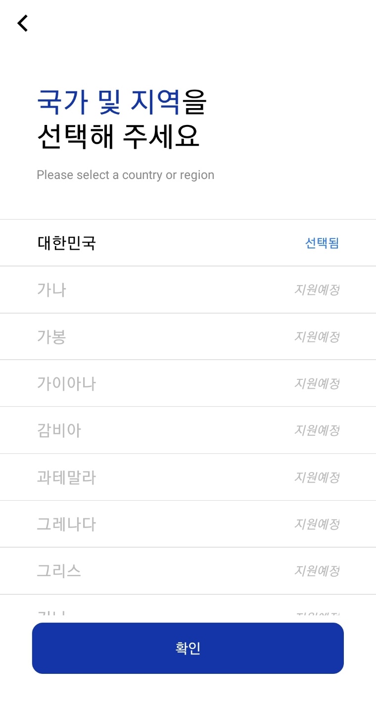 어플 스토어에서 백신증명서 또는 쿠브라고 검색하면 코로나 19 예방 접종 인증 시스템 어플을 다운 받을 수 있다. 어플 설치 후 언어는 편리한 언어를 선택하고 본인의 국가와 지역을 선택하면 된다.