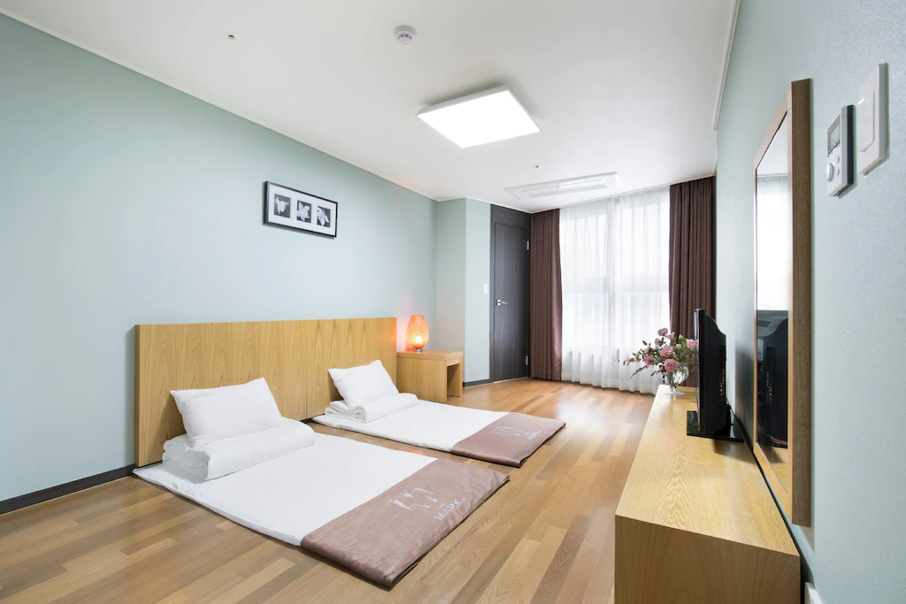 해운대 백사장에서 640m로 가까우면서 객실의 룸 컨디션 좋은 편이다. 여기에 극 성수기에도 1박당 10만원대 예약이 가능하다는 것도 최고 장점이다. 여기에 디럭스 온돌 기준으로 객실크기는 29m²다. 꽤 넓은 편!