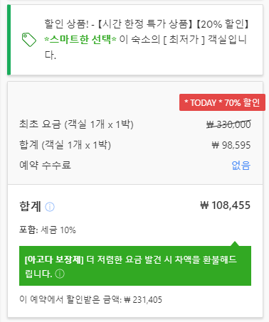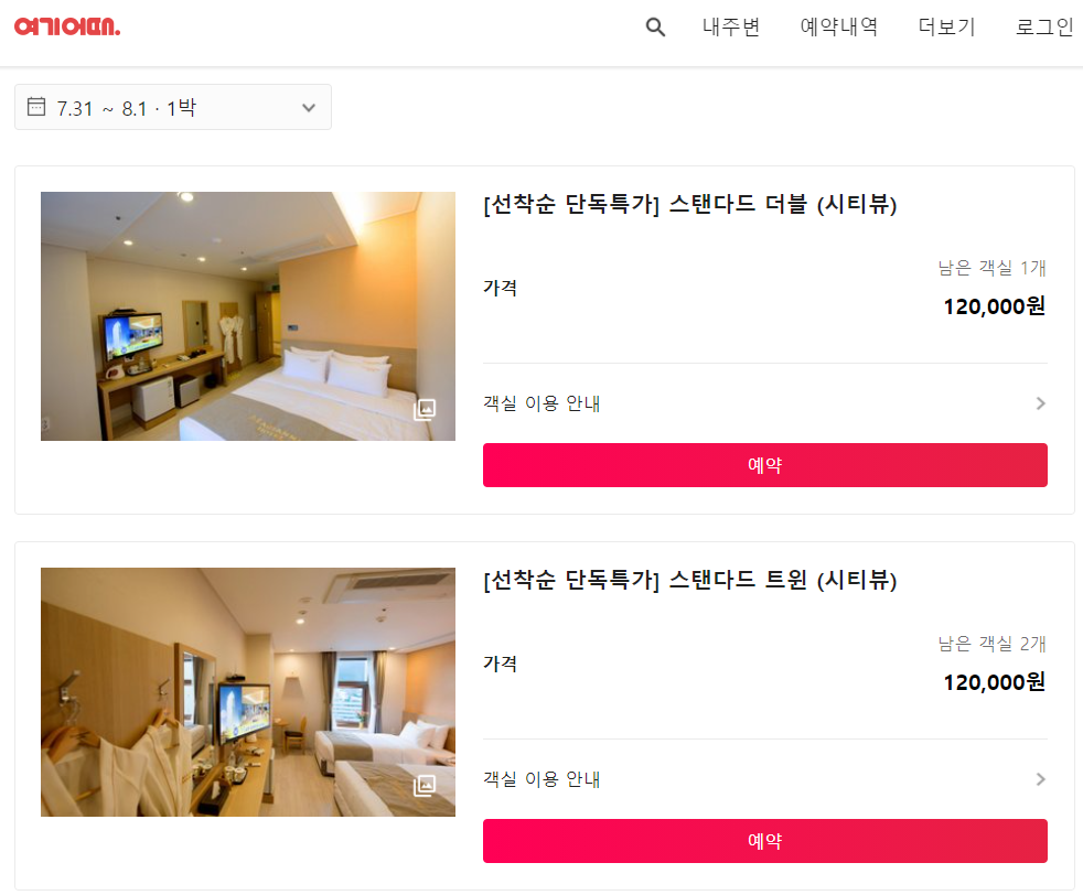 (특히 각 온라인 예약 서비스는 개인의 멤버쉽에 따라 보이는 가격이 다를 수 있다.)