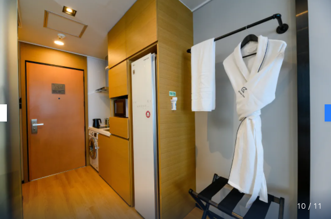가장 저렴한 예약사이트는 이 글을 작성하는 시점으로는 트립닷컴(골든튤립 해운대 호텔 앤 스위트 자세히 보기)이다. 서비스 아파트이므로 아주 간단한 취사가 가능하며, 스타일러스가 구비되어있어 여름의 뜨거운 햇살 아래, 그리고 해운대 바다의 특성상 짠 바닷바람에 옷이 상하는 것을 막아준다. 객실크기는 21.4-23m²정도이므로 무난한 편.