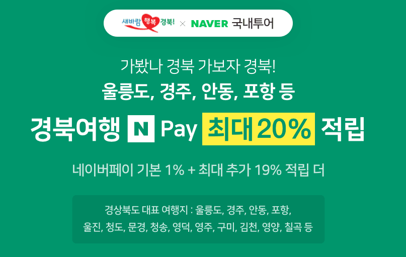 경상북도&울릉도 여행상품 N페이 최대20%적립