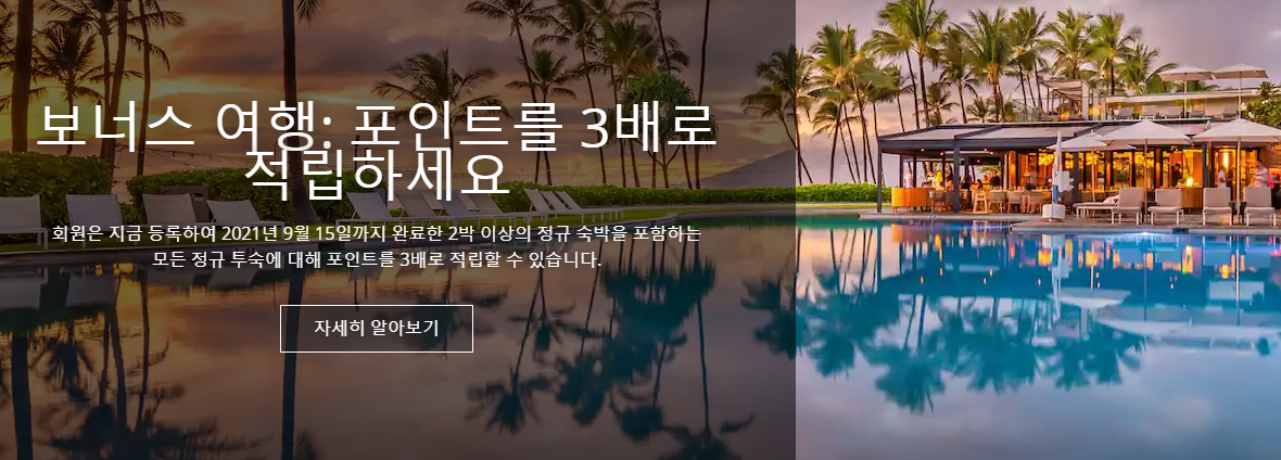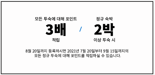 - 3배 포인트 적립 기간: 2021년 9월 15일 투숙까지 인정