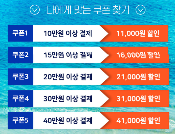 ① 국내 수상레저 상품 (수영장, 워터파크 시설 제외) / 2,4,8만원이상 결제시 최대 1만원 할인