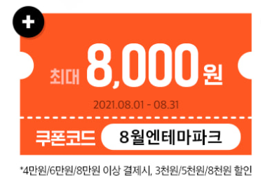 ・쿠폰 사용기간: 2021년 08월 08일까지(결제 기준) 사용가능