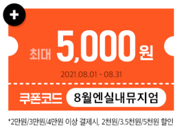 ・쿠폰 사용기간: 2021년 8월 31일까지(결제일 기준)사용가능