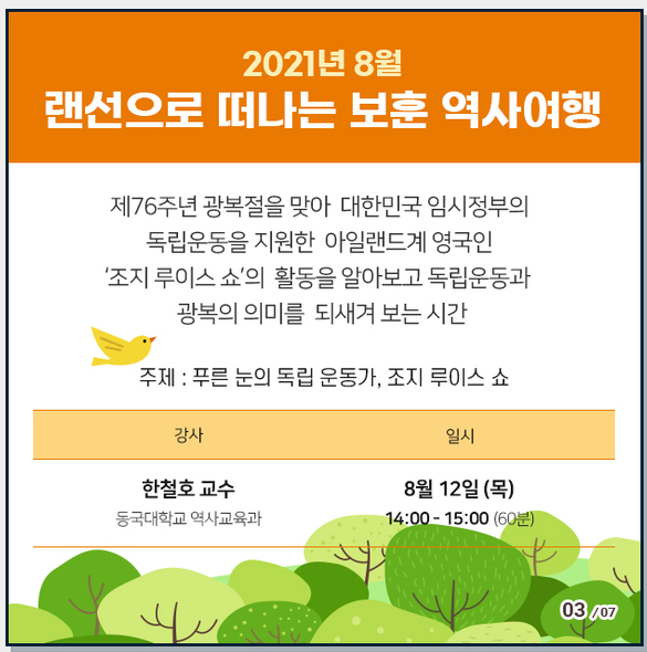 - 랜선으로 떠나는 보훈 역사 여행 " 푸른 눈의 독립운동가, 조지 루이스 쇼" (08.12) 자세히 보기