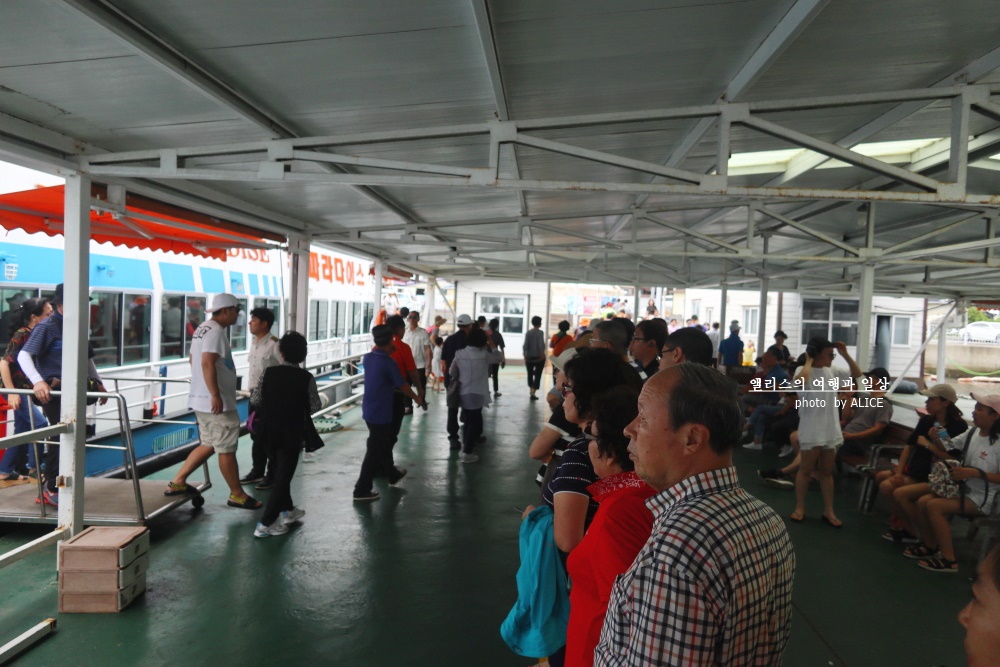 아.. 근데 시간이 지날수록 유람선의 좌우 움직임폭이 깊어지기 시작하더니 순식간에 너울이 있는 바다로 향했다는 것을 알 수 있을 만큼.. 좌우 움직임이 심해졌다. 창가로 파도만 보였다가 섬만 보였다가 아주.... 위아로 대박 움직임 덕분에 슬쩍 식겁하기도!