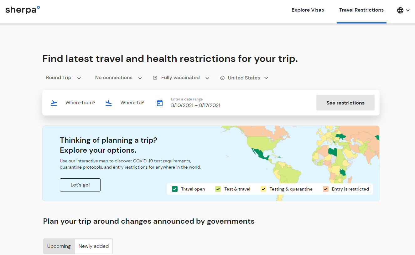 가장 최신 이동/건강 관련 제한 소식을 찾을 수 있는 웹사이트! Sherpa