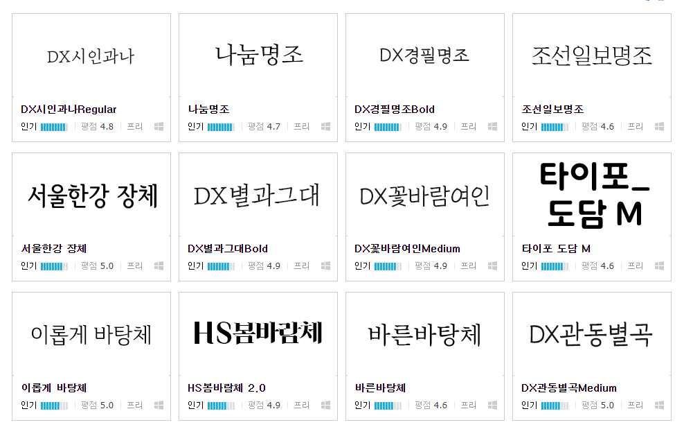 네이버에서 무료로 이용할 수 있는 폰트는 그 종류가 굉장히 다양하다.
